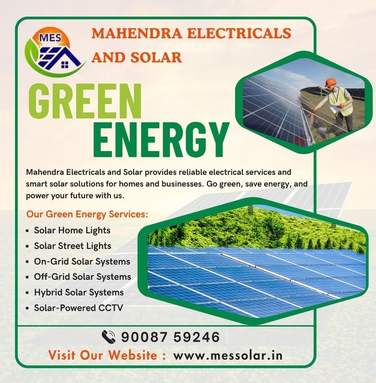 At Mahendra Electricals and Solar, we believe in creating a sustainable future through clean, affordable, and reliable energy solutions. As a trusted provider of electrical services and solar technology, we are dedicated to helping homes, businesses, and communities transition to renewable energy.